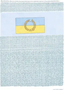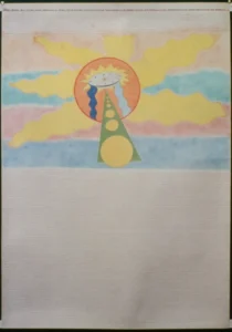 145-TITLE: DIVINE SYMBOL OF THE FUTURE; DIVINE BANNER OF THE MILLENNIUM OF PEACE; IT REPRESENTS THE TOTAL TRIUMPH OF DIVINE HUMILITY OVER THE FLEETING LAW OF FORCE; IT IS THE DIVINE SYMBOL OF THE GREAT COMFORTER.-